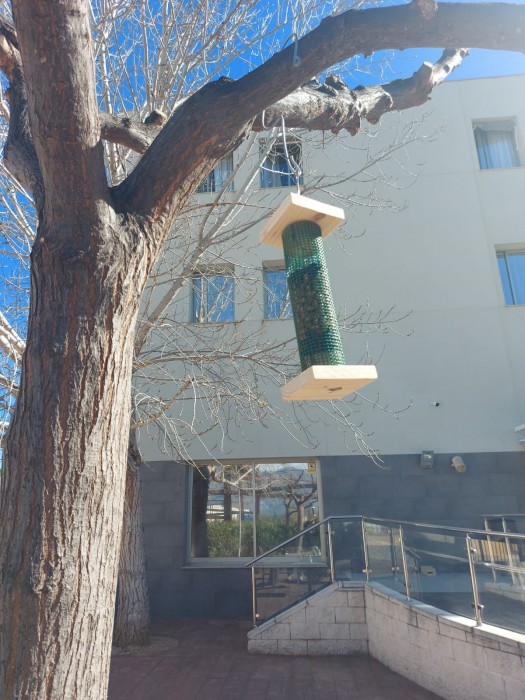 Avui, gràcies a la fundació plegadis, hem començat el projecte "Jardins vius". S'han instal.lat casetes per a que els ocellas tinguin els seus nius, també un espai amb menjar