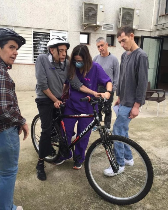 Amb la nostre fisioterapeuta Laura, ens posem en forma amb la bicicleta. Una teràpia lúdica molt profitosa per la salut tant física com mental.
