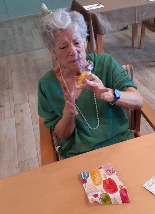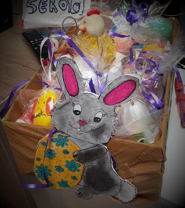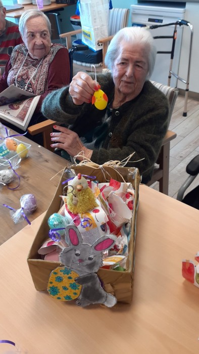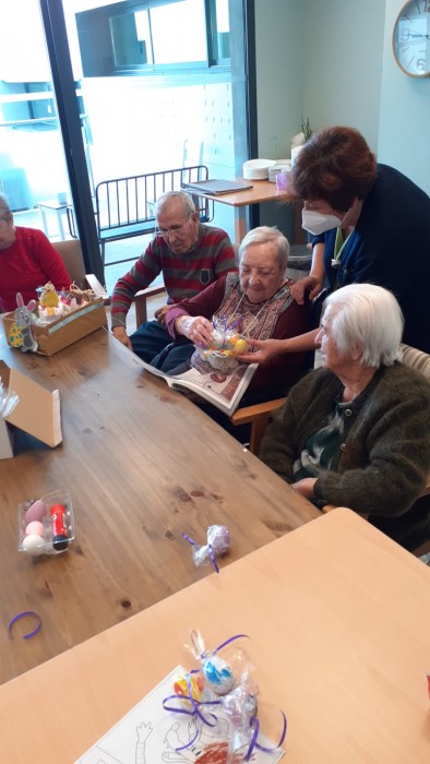 Durant el taller d'ahir a la tarde, dia de pasqua, vam estar decorant diferents ous i després els vam deixar tots junts en aquesta caixeta per decorar el menjador.