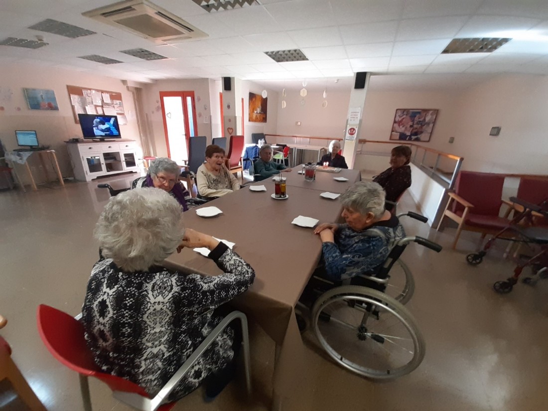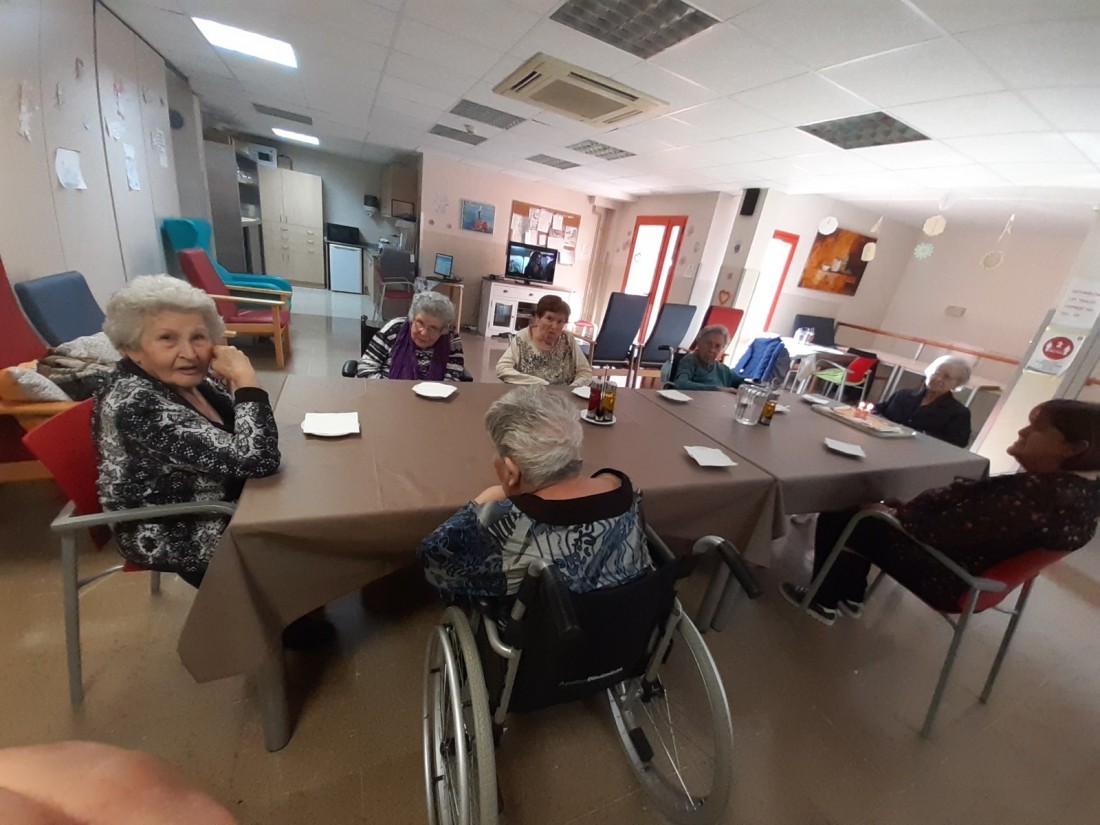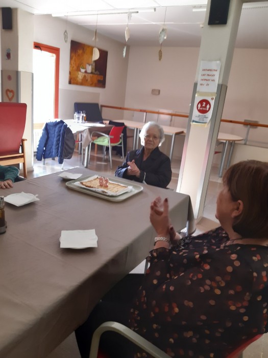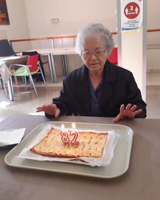 Aquesta tarda hem celebrat l'aniversari de la senyora Dolores, la seva família li ha portat un pastís deliciós! Per molts anys!