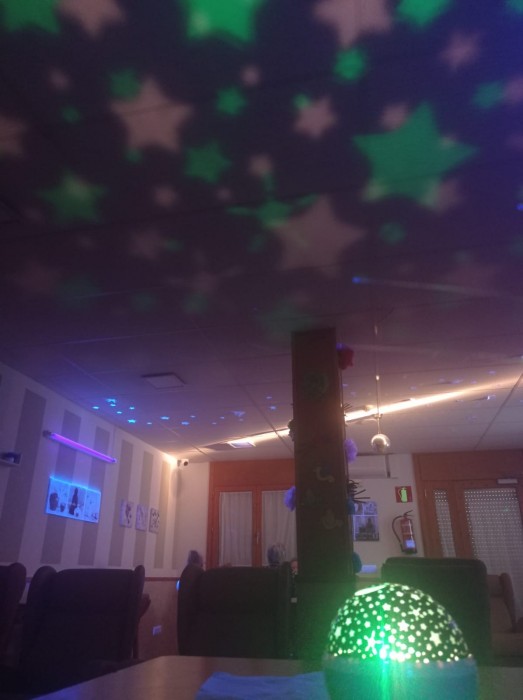 Avui hem dut a terme una activitat d'estimulació sensorial les àrees visuals, auditives i tàctils, amb un ambient de calma i relaxant.