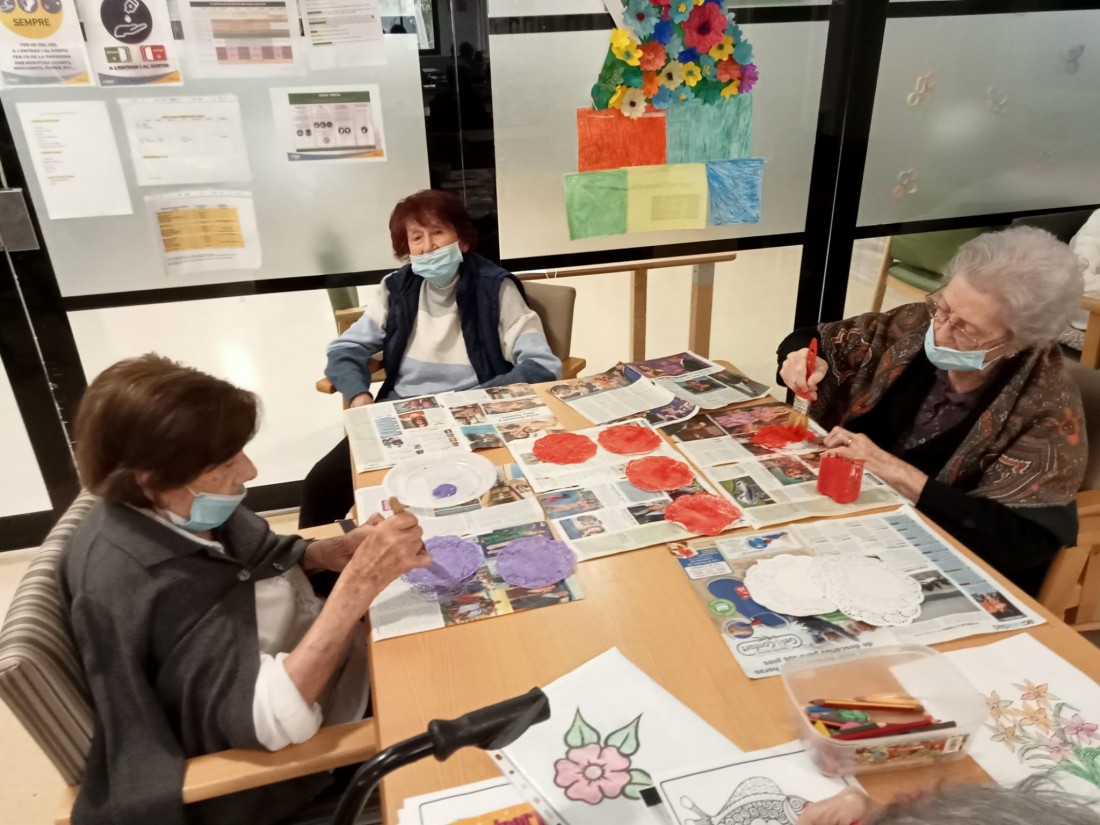 Vam gaudir d'una sessió de gimnàstica grupal molt divertida, en que vam fer jocs amb el paracaigudes. Després vam fer un taller de manualitats de roses de Sant Jordi.