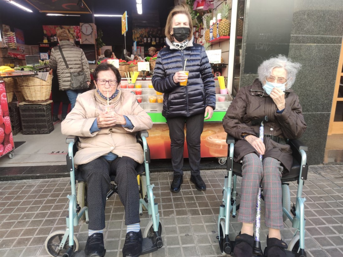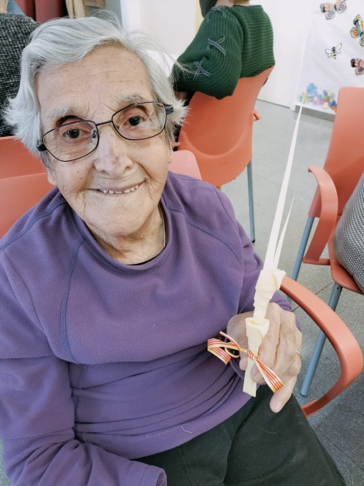 Com és tradició, els usuaris del centre de dia hem fet un passeig fins la plaça de la vila, fins la paradeta de la familia Torres. Cada any ens regalen el material per fabricar les nostres palmes. Moltes gràcies.