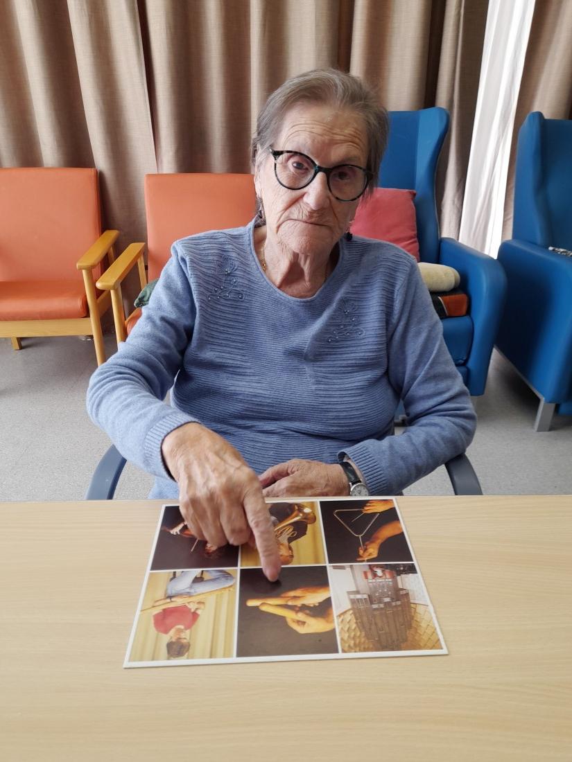 Donem fotografies d'instruments musicals i les ersones residents els han d'anomenar i escriure.