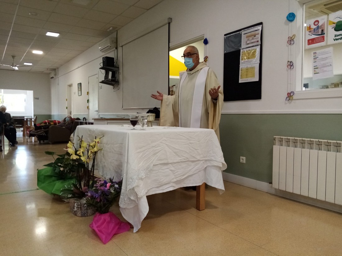 Avui al Mati els Residents de la Residència l'Onada Riudoms han tingut una visita molt especial, el Mossen Rafael ha vingut a Fer la missa del Dijous Sant Hi han quedat encantats, de poder tornar a Fer poc a poc allò que tant anhelen.