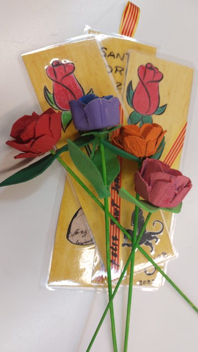 També estem enfeinats amb les roses de Sant Jordi i els punts de llibre!!!