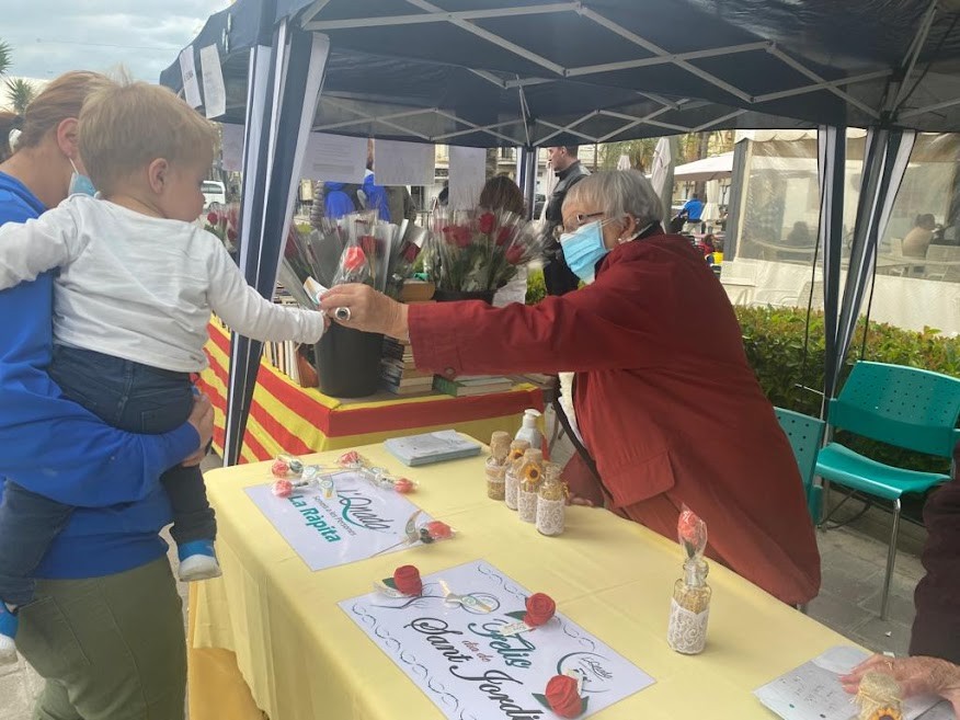 Aquest any sí! Hem tornat a posar la paradeta a la plaça Carles III juntament amb les altres. Poder activar aquestes obres socials ha estat tot un plaer. Per una rosa un petó volador!