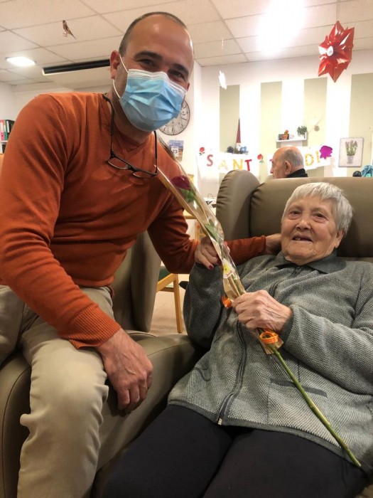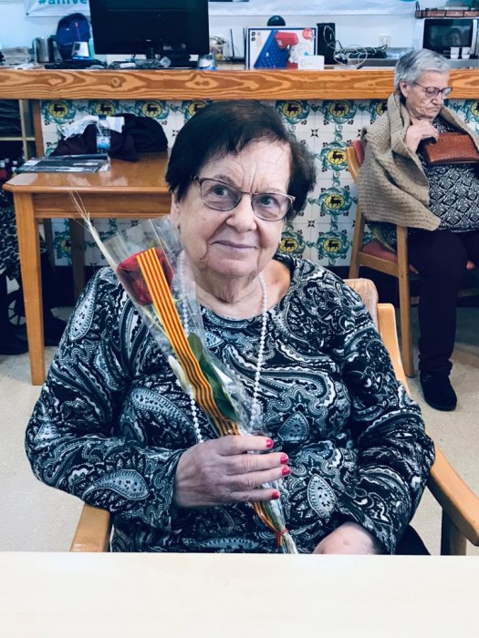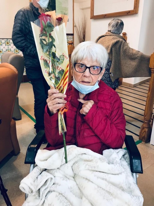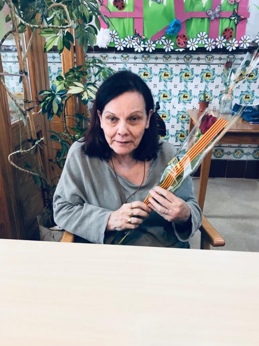 Felices amb les nostres roses de Sant Jordi.