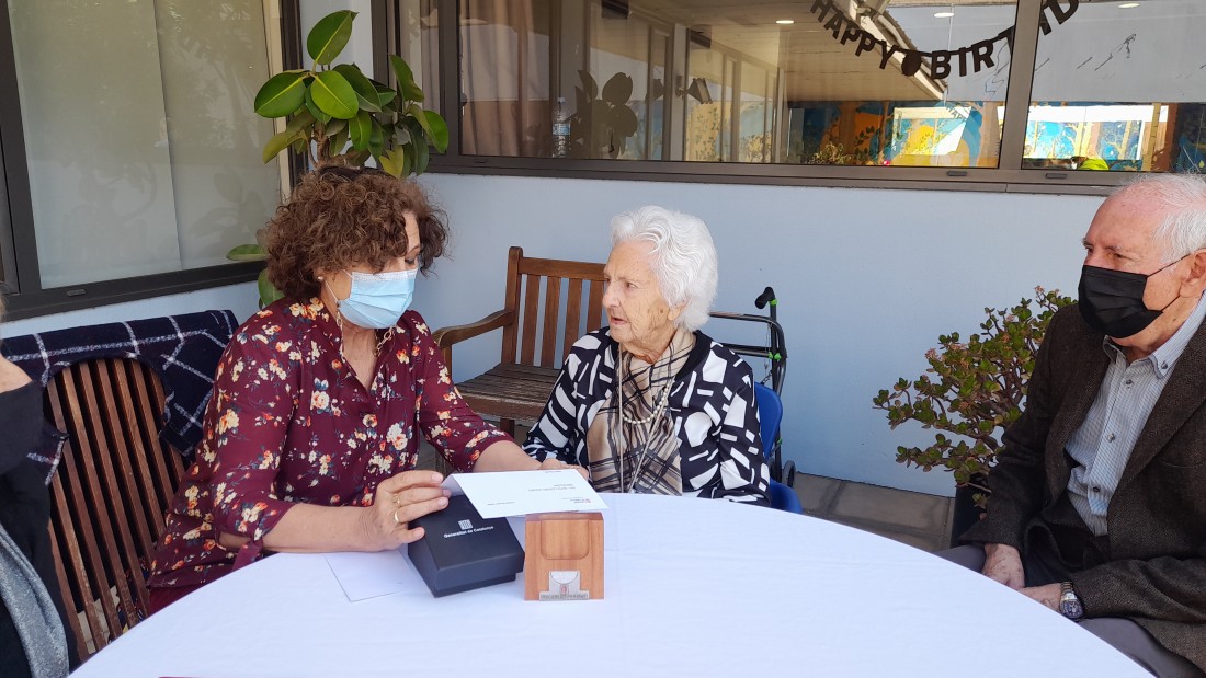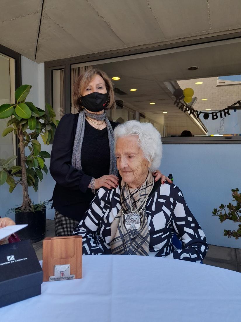 Avui es fa entrega de la medalla centenària a la sra. Maria. Hem realitzat un homenatge, on la Generalitat de Catalunya ha lliurat aquesta medalla commemorativa per haver complert cent anys. En aquest acte també ha estat la família i els treballadors. On ha sigut molt emotiu!