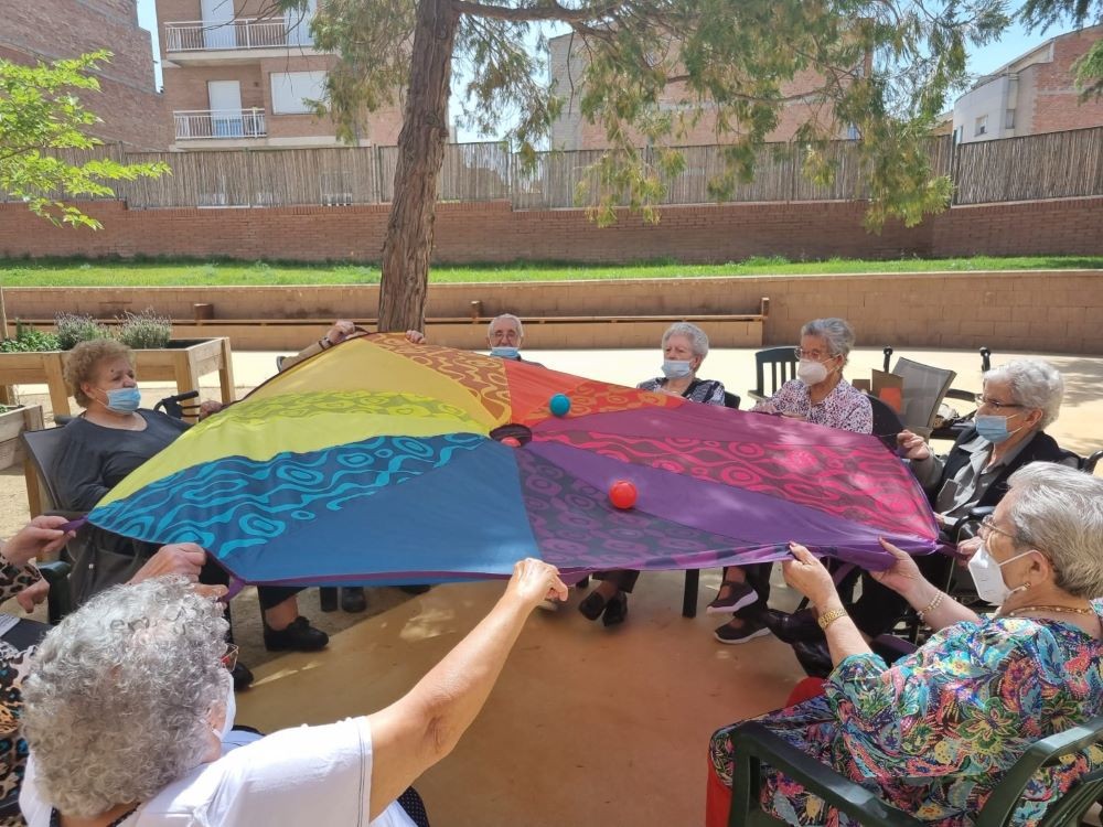 Avui per un costat hem aprofitat per estrenar el paracaigudes i per un altre he sortit a la plaça a prendre l'aire i a fer tertúlia!