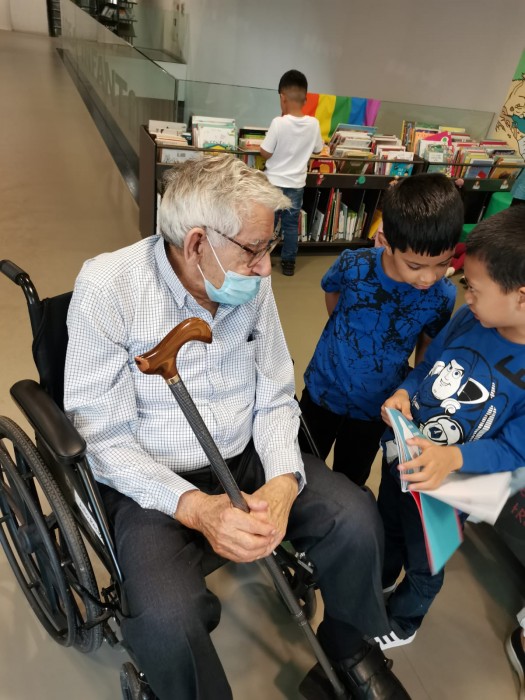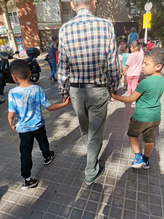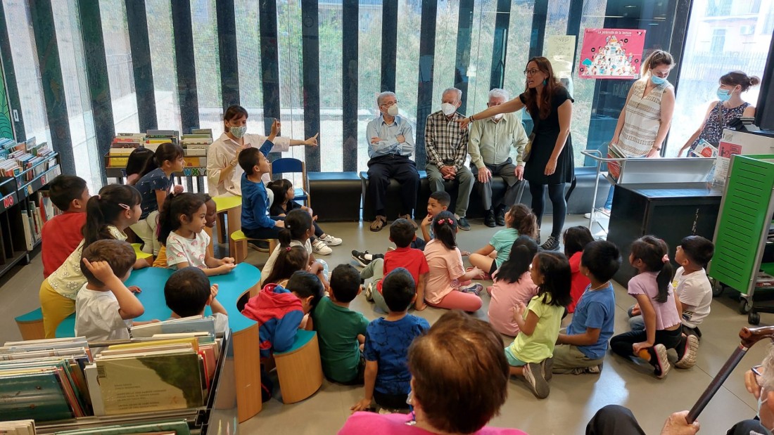 Aquest matí els nens i nenes de P5 de l'Escola Aldana ens han vingut a buscar per anar a la biblioteca.