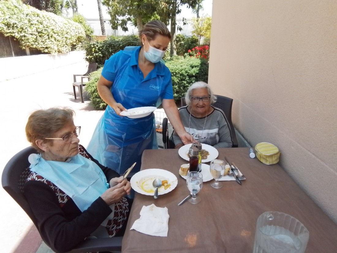 Avui, un grup de residents, han dinat al jardí! Han pogut compartir una estona ben agradable, en bona companyia, i gaudint de la brisa, les olors i els sons que ens ofereix la primavera!