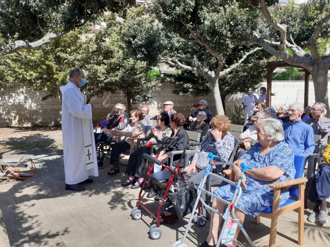 Aprofitem el bon temps per gauidir amb la celebració de la eucaristia als jardins del centre.