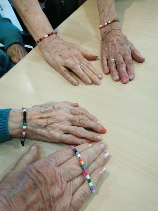 Al centre de dia han fet un taller de manualitats, on han fet polseres. Es treballa la motricitat fina.