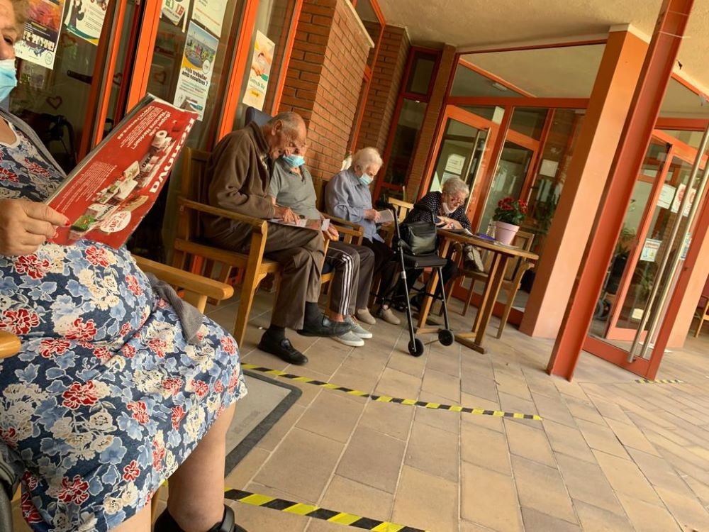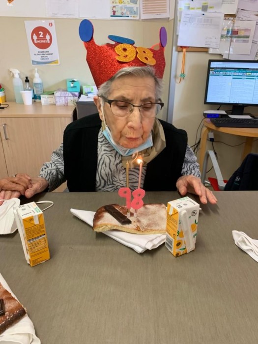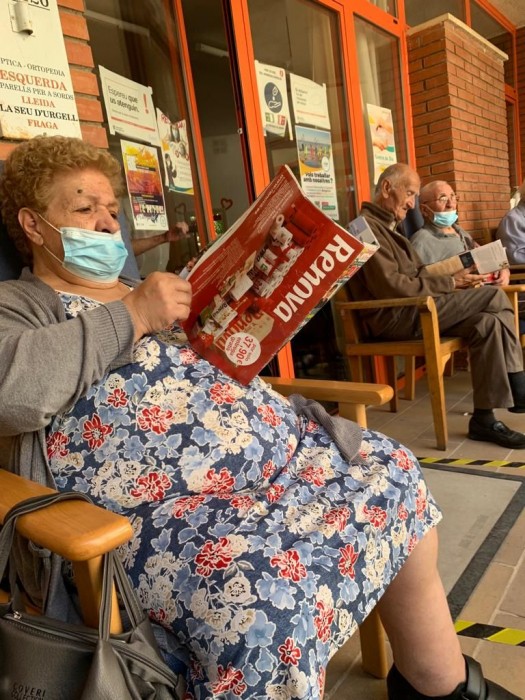La setmana passada vam celebrar l'aniversari de la Sra Maria!! per tal de poder païr la coca tant bona que ens va portar la seva família, després de berenar, ens vam assentar a l'hombra del portxo a llegir.