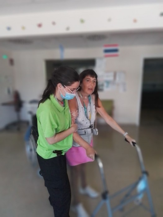 La Ruth passejant amb el caminador