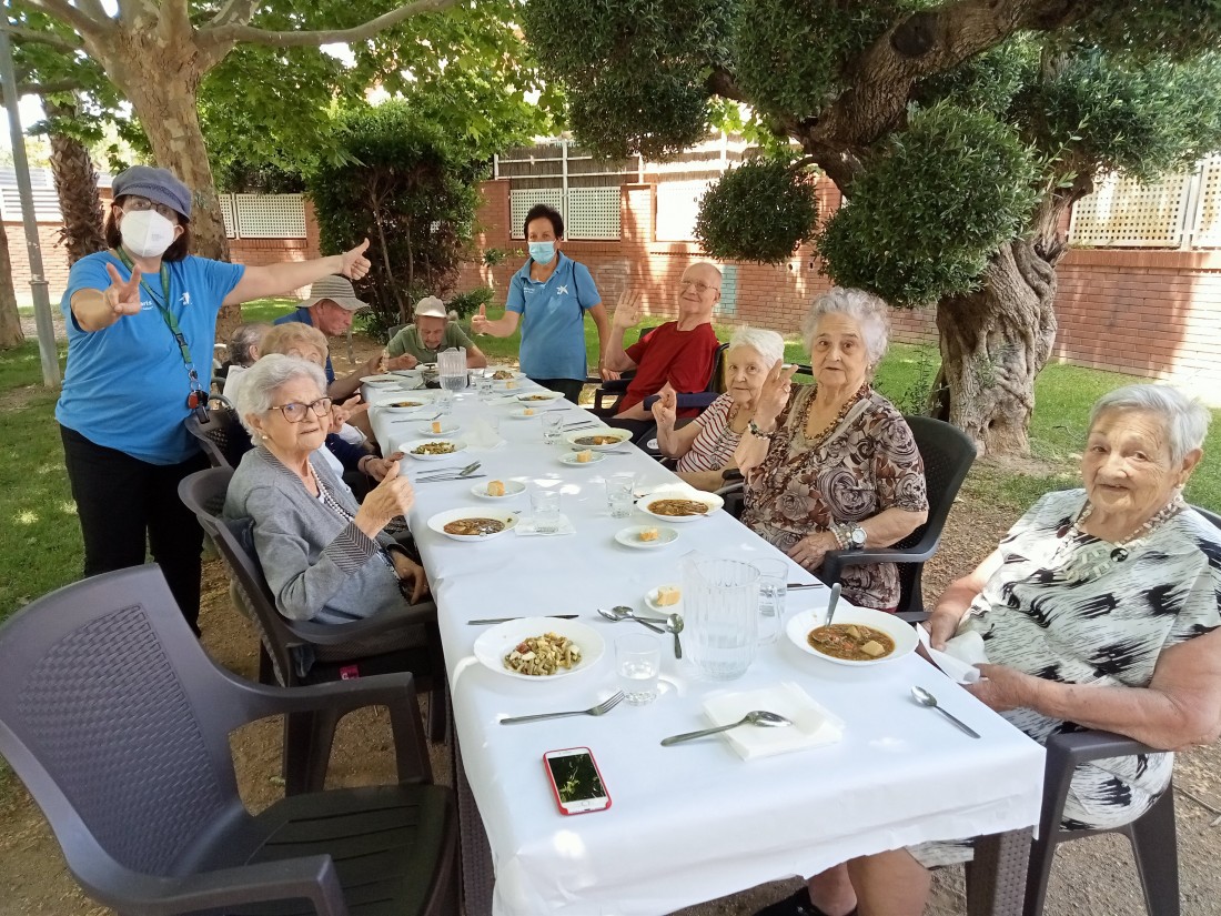 Ahir un grup de persones residents de L'Onada Riudoms van sortir a dinar al Parc de la Salut. Sota l'ombra dels plateners s'hi està molt a gust!
