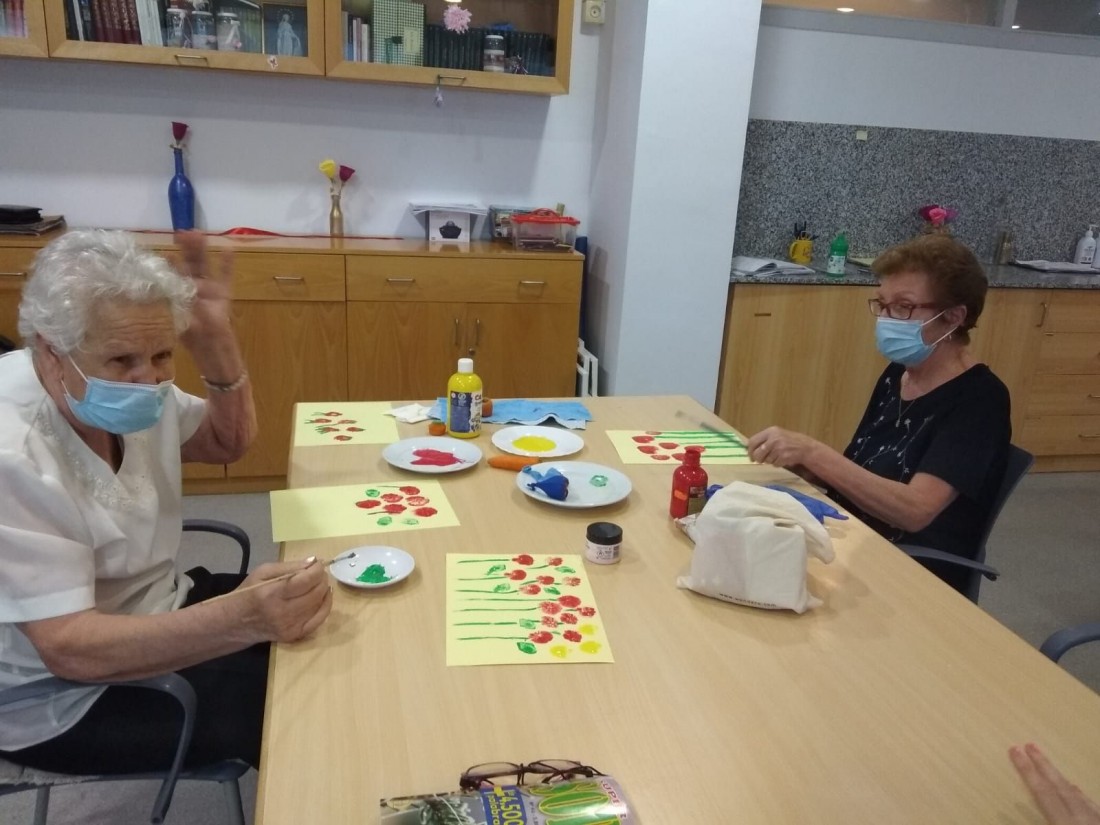 Han pintat flors amb pintura, on han estimulat la creativitat i han gaudit del taller.