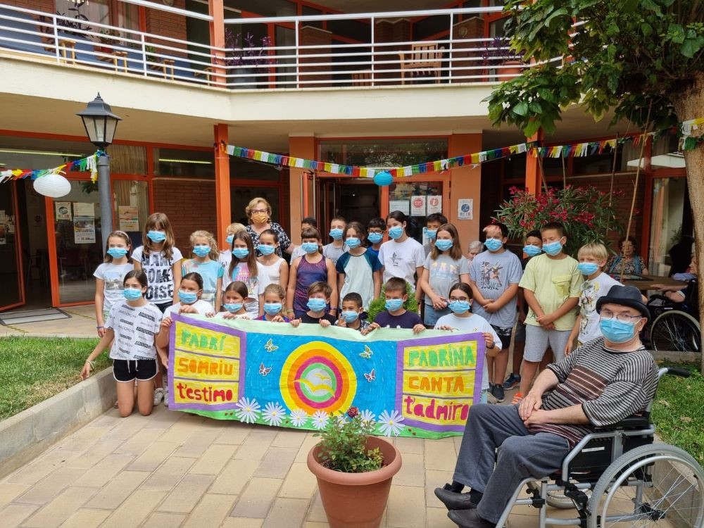 Aquest matí hem tingut la sort de rebre la visita dels nens i nenes del Col·legi Mare de Déu de Montserrat de Les Borges Blanques! Feia temps que ens estaven preparant un mural per decorar la casa... però amb el Covid i les vegades que els hi havien confinat la classe no hem pogut coincidir fins avui!