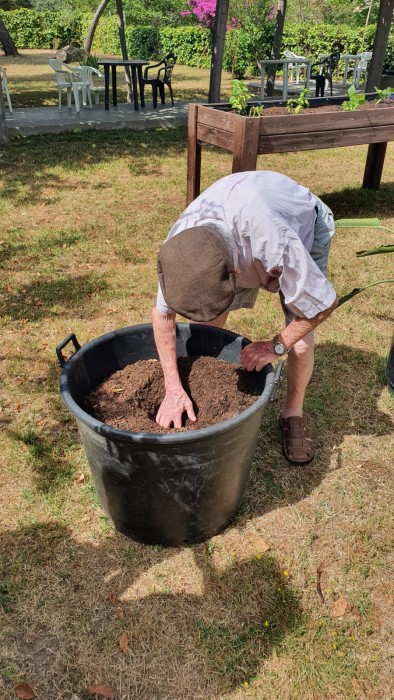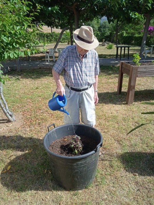 Hace unas semanas plantamos judías, tomateras y hierbas aromáticas. Ayer plantamos albahaca y que bien huelen!! Ahora veréis como están creciendo. Cada día salimos al jardín a ver cómo van y las regamos si es necesario.