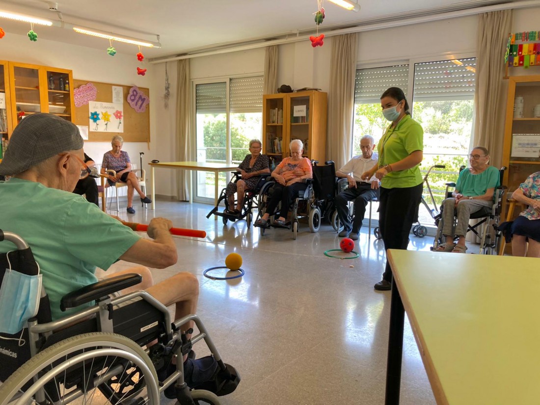 Avui en teràpia Ocupacional treballem la coordinació bilateral amb moviments simètrics dels braços això per tal de mantenir habilitats i aconseguir participació activa a les AVD