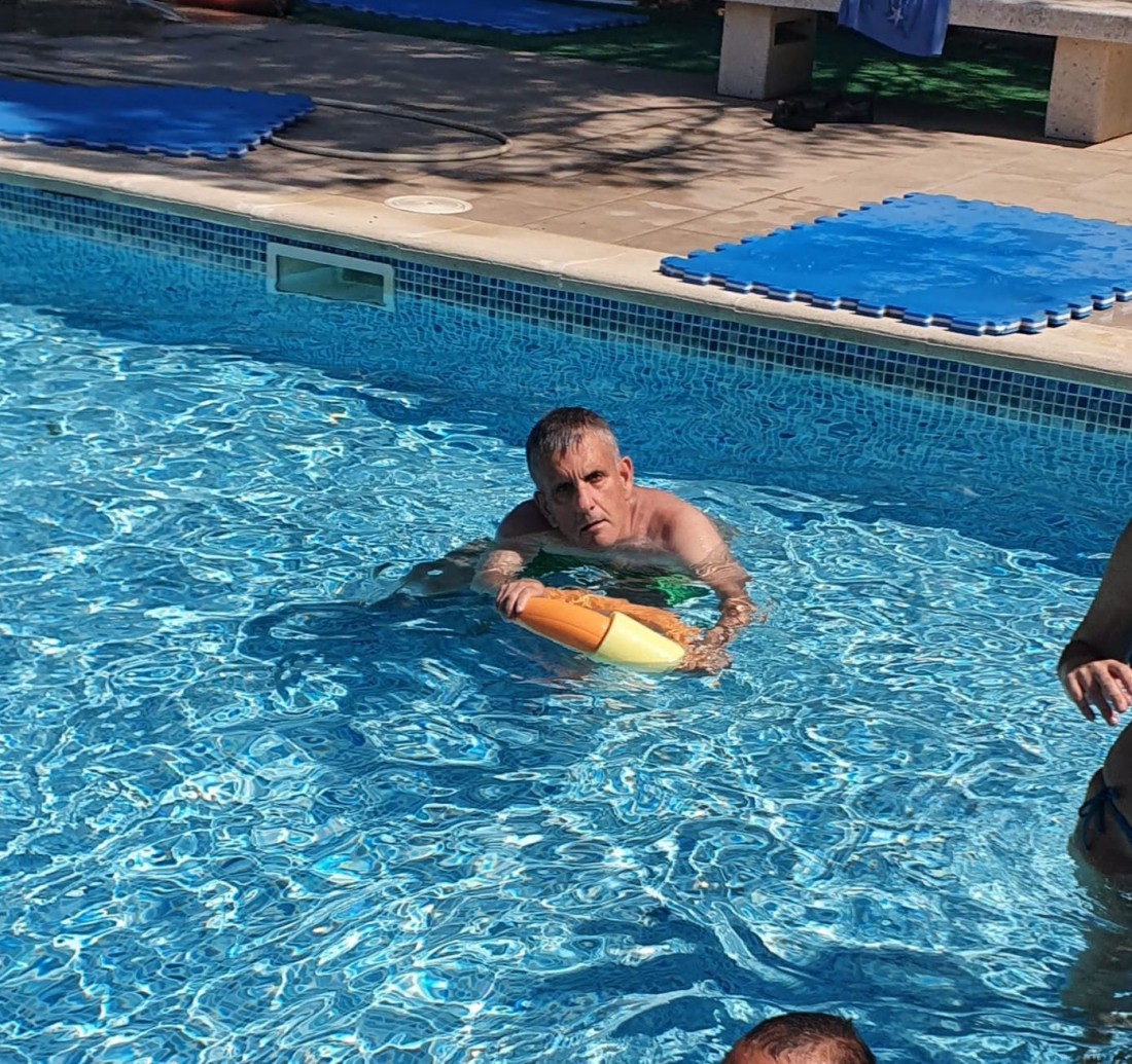 Sessió de relaxació a la piscina. Tots els residents i totes les residents, acompanyats dels nostres monitors i monitores, disfruten cada dia d'una estona a la piscina. Una bona remullada i una mica de sol sempre va bé pel nostre estat d'ànim.