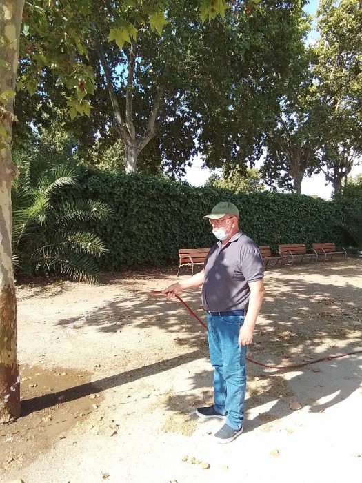 Cuidado del jardín semanal. Aquí Robustiano y Manuel muy colaboradores.