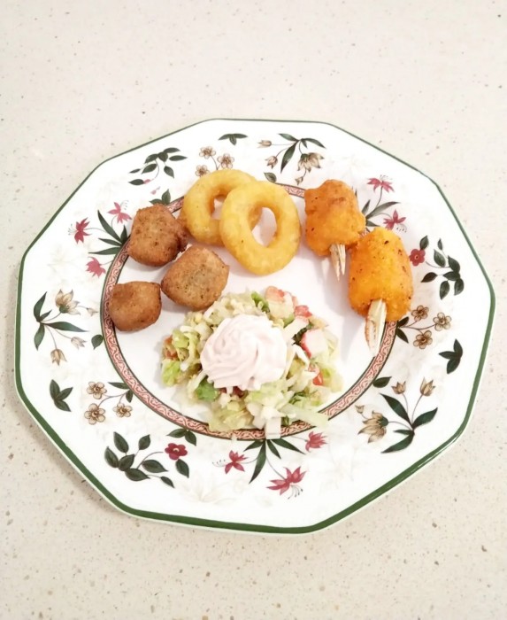 Entremès, fideuà amb allioli i profiterols de nata amb xocolata.