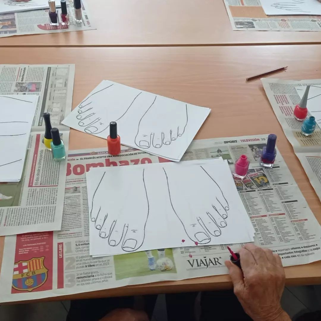 Fem manicures i pedicures sobre paper