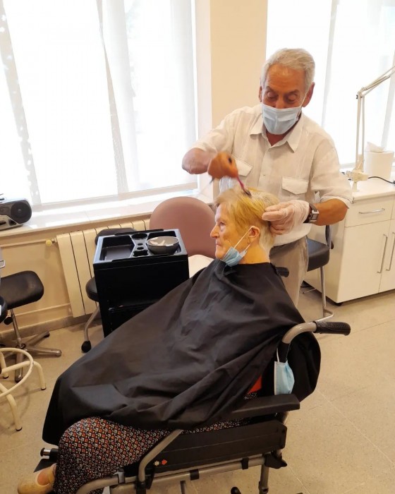 Aquesta tarda l'Eladio, el marit de la Sra. Maria, que és perruquer, ha vingut a retocar-li el tint ell mateix. Han estat d'allò més agust a la perruquería del centre!!!