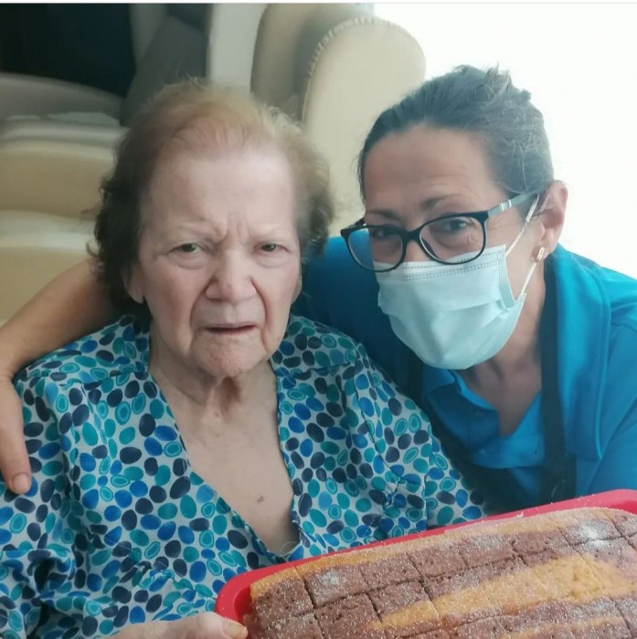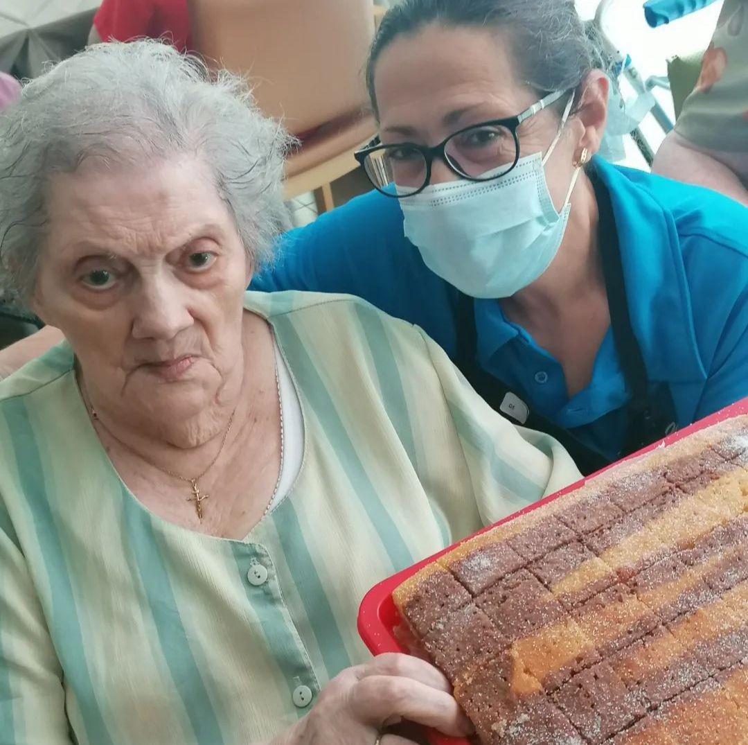 Ahir, dia de Santa Rosa, C. Rosa va fer un coc i avui l'ha compartit amb totes les altres Rosa de la Colònia Gasol i amb la resta de companys. Estava boníssim!! Un bon detall per acompanyar el cafè.