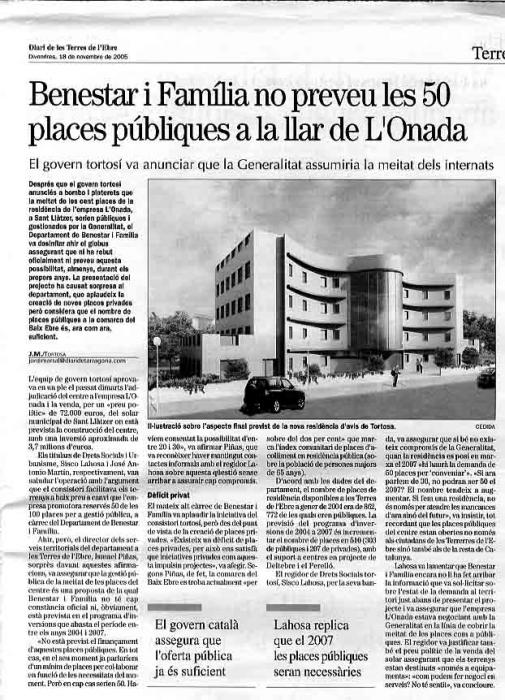 Benestar i Família no preveu les 50 places públiques a la llar de l'Onada