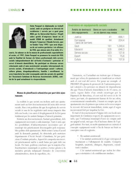 Per Cinta Pasqual, directora de L'Onada Serveis i vicepresidenta de l'Associació Catalana de Recursos Assistencials