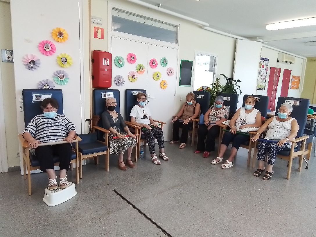 Usuarios haciendo ejercicios de coordinación y equilibrio.