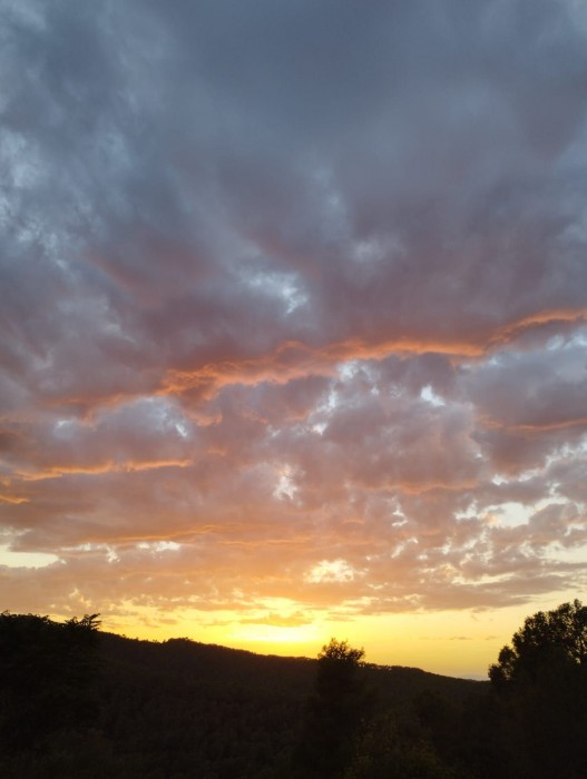 En les següents imatges podem observar 3 coses. En una de les fotografies veiem als nostres residents i a les nostres residents passejant pel bosc, exercitant les cames i oxigenant els pulmons per un bon estat físic i cognitiu. En segon lloc veiem un petit descans, on els i les residents estan recuperant força i compartint una estona entre companys i companyes. I per últim, una imatge preciosa feta des de la residència, a l'arribada de l'excursió, una posta de sol molt maca que necessitava ser captada.