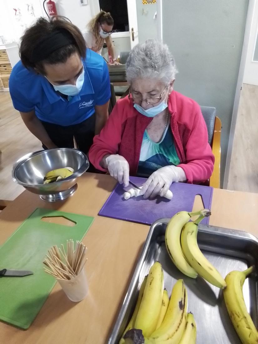 Aquest mati els usuaris del Centre de dia de l'Onada de Tarragona han realitzat un taller de cuina a través de diferents tipus de fuites com el plàtan , la síndria hi han el.laborat unes brotxetes de fruita boníssimes! I avui serà el seu postre!!
