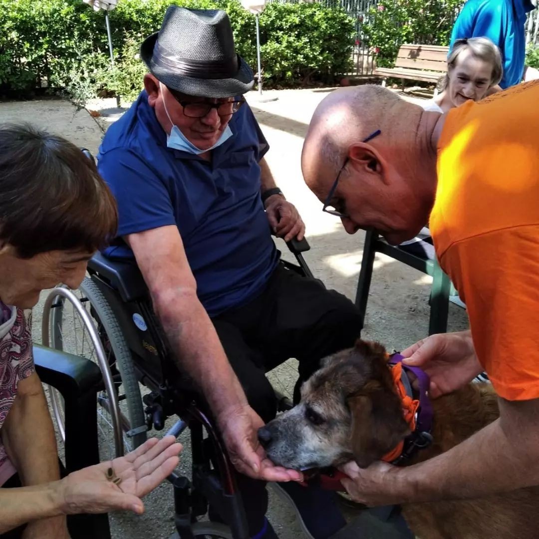 La teràpia amb gossos és una pràctica habitual als diferents centres de L’Onada. En col·laboració amb entitats com Recuérdame Alzheimer, per exemple, aquest tipus de teràpia porta a les residències un punt de llum i les persones usuàries gaudeixen d’un dia diferent interactuant amb els gossets que porta l’entitat.