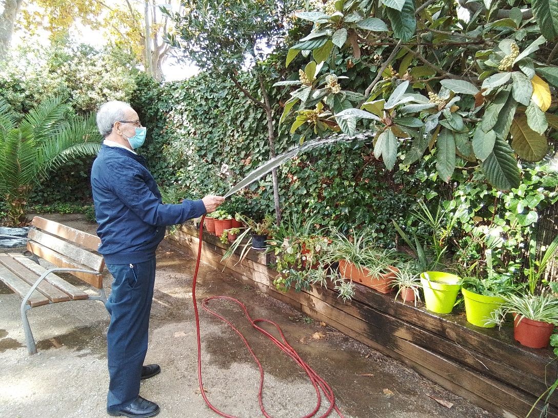 Elena y José María una vez más colaborando con el cuidado del Jardín.