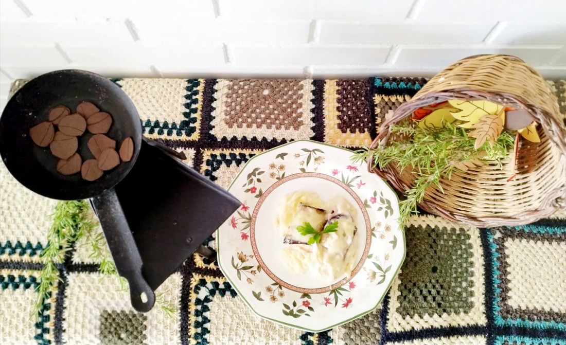 Rotllets d'albergínia amb pernil i formatge, acompanyats de salsa beixamel. Una delícia!!