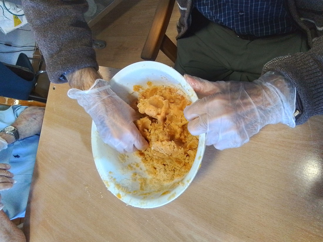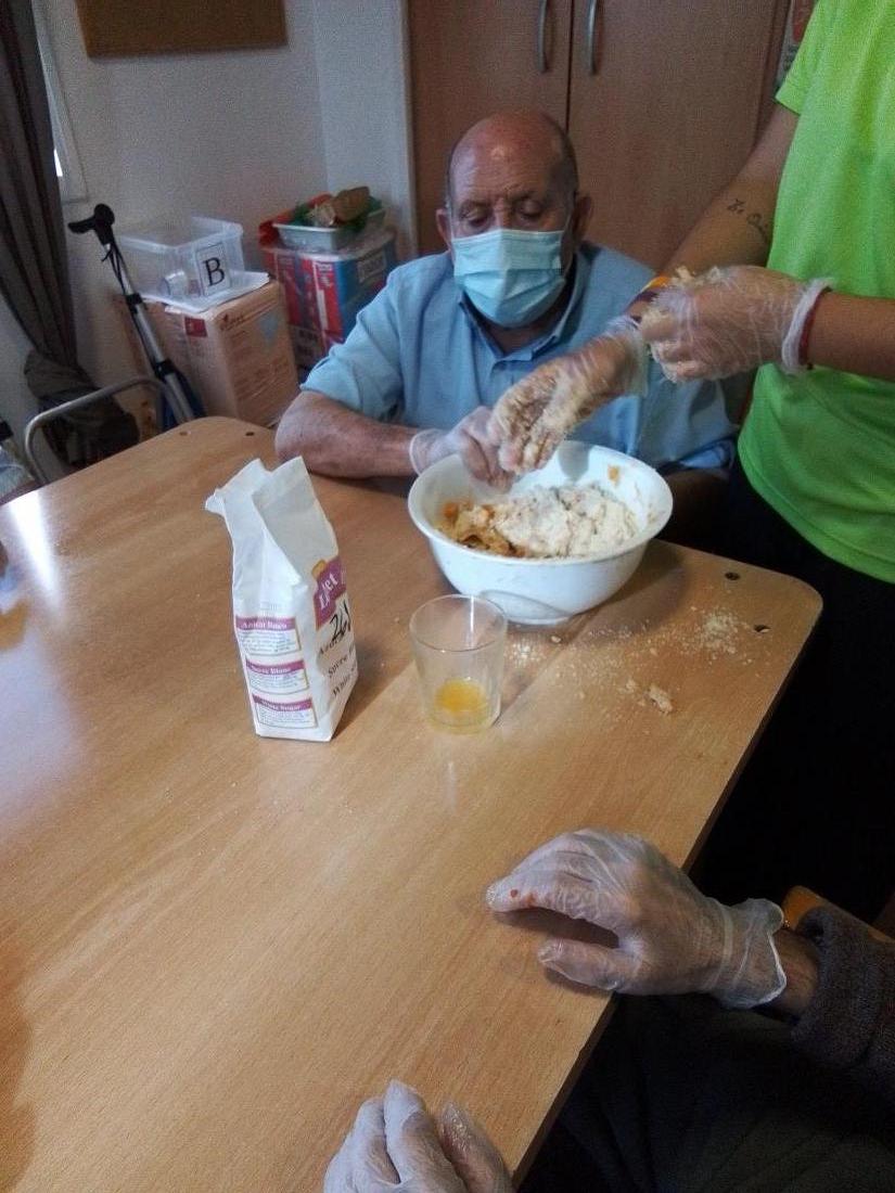 Avui dia 28 d'octubre els usuaris del centre de dia han elaborat panellet, també hem recordat els menjars típics de la castanyada i les curiositats que comporta aquest dia.