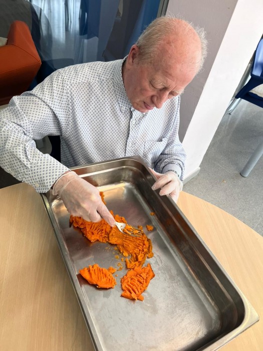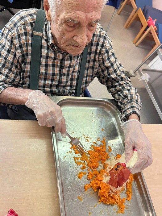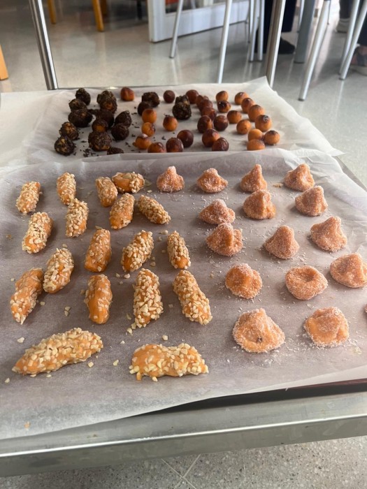Gaudim fent el taller de cuina, per la Castanyada elaborem diferents panellets.