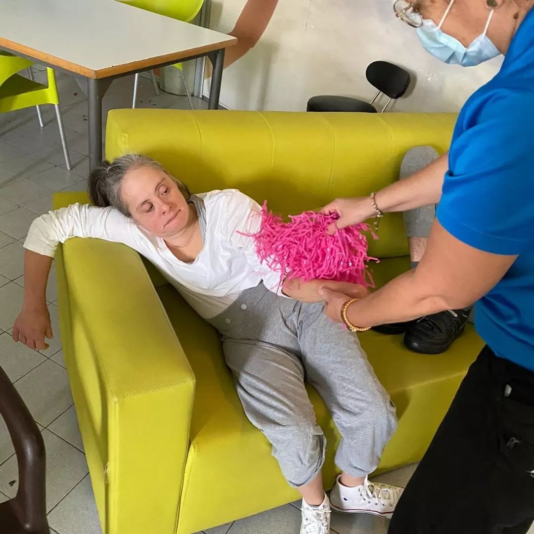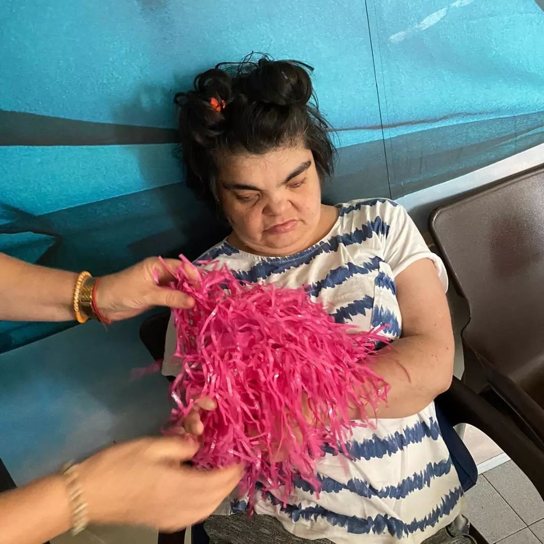 En les següents imatges podem veure al Juan Manuel, a la Rosalia i a la Miriam en l'activitat d'estimulació sensorial tàctil. Aquesta activitat consisteix en que els nostres i les nostres residents puguin tenir contacte amb diferents objectes de diferents textures i així estimular la part sensorial, en concret el sentit del tacte.