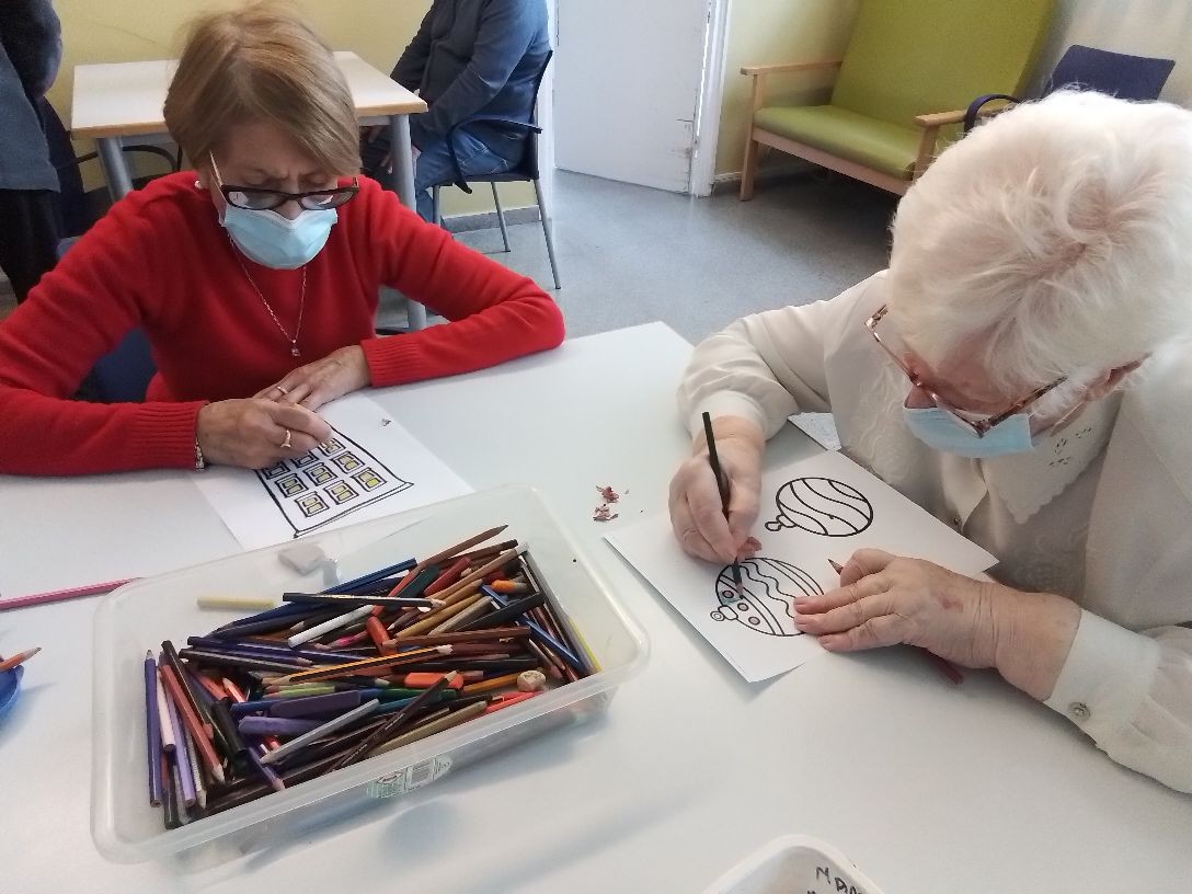 Preparando los dibujos para el mural de Navidad.