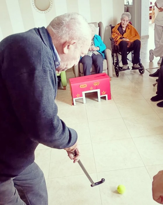 Hem improvitzat un "Minigolf". Ho hem passat molt bé, hem fet dos equips i, amb el suport de les noies de pràctiques, hem organitzat una bona partida ;)