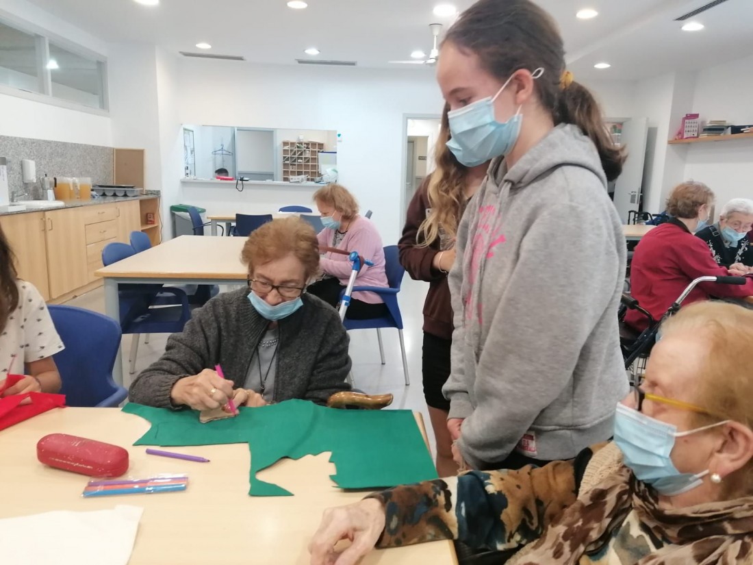 Avui al Palau de la Música hem tingut visita dels alumnes de l,escola Jaume 1er i han participat amb les nostres activitats,hem començat amb la decoració nadalenca i ens han ajudat amb els exercicis cognitius.