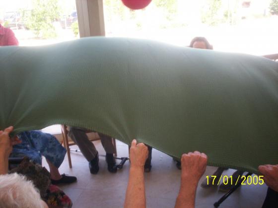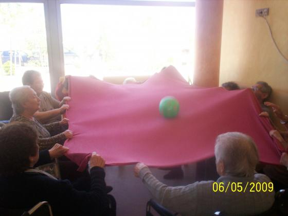Com que ja s'acosten els Ebre límpics de la Sènia, treballem els valor de trballar en equilp. Tots a una. Hem fet grups de 6 avis, els hem donat un llençol gran i una pilota al centre: l'objectiu era llançar a l'aire la pilota i tornar-la a recollir, que ha passat? Que com que han començat anant per liure, és a dir, cadascú a la seva els queia la pilota fins que ells mateixos han arribat a la conclusió que s'havien de coordinar i anar tots a l'hora. A la vegada que hem rigut i ens ho hem passat bé, ens n'hem adonat l'important que és treballar cooperant i no competint! Una per a tots i tots per a una!!!
