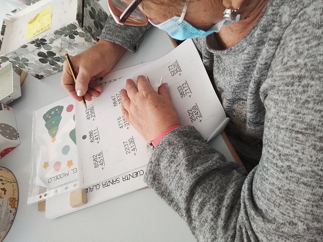 Aquí con las sumas y otros dibujos para ejercitar la memoria.