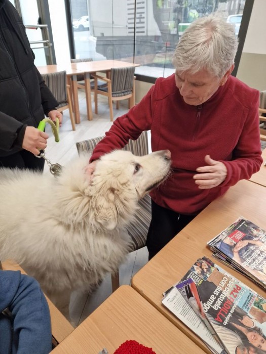 El Max, no està entrenat per ser gos terapèutic però el que aconsegueix cada cop que entra al centre és per aplaudir - lo! Tot el que té de gros i pelut, ho té de bo i atent amb els nostres usuaris! Gràcies per visitar-nos!