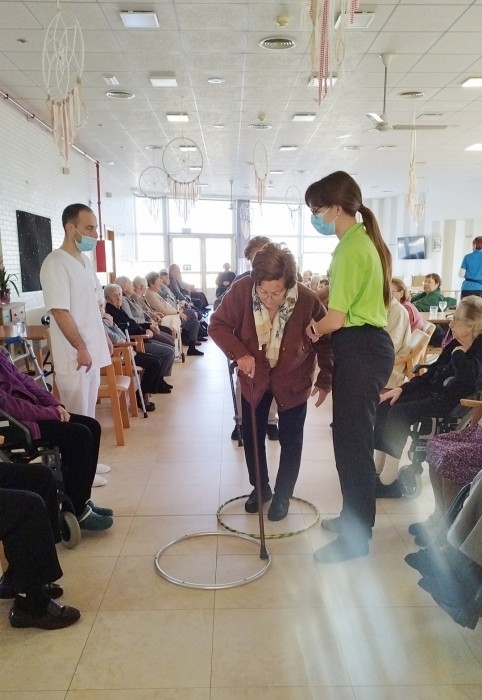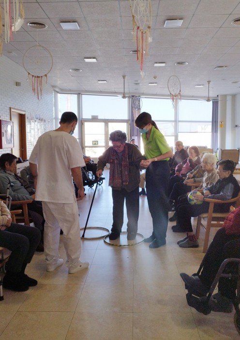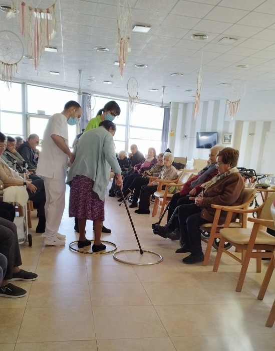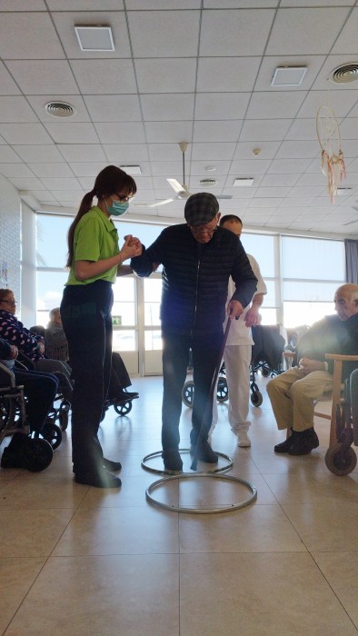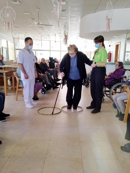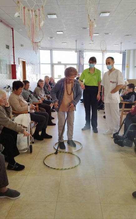 Avui recreem l'activitat a la residència. És una activitat físico-funcional que pretén mantenir l'equilibri i la marxa, així com l'atenció i orientació. A més, tenim el suport del noi de pràctiques de fisioteràpia i la guia de la nostra fisioterapeuta!