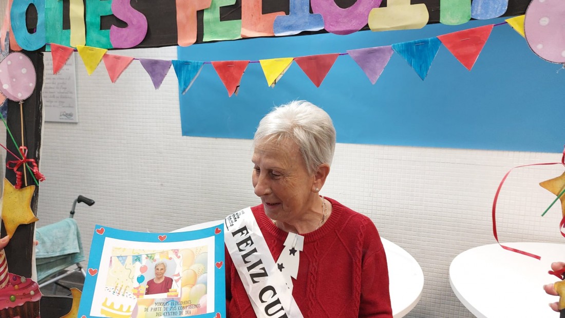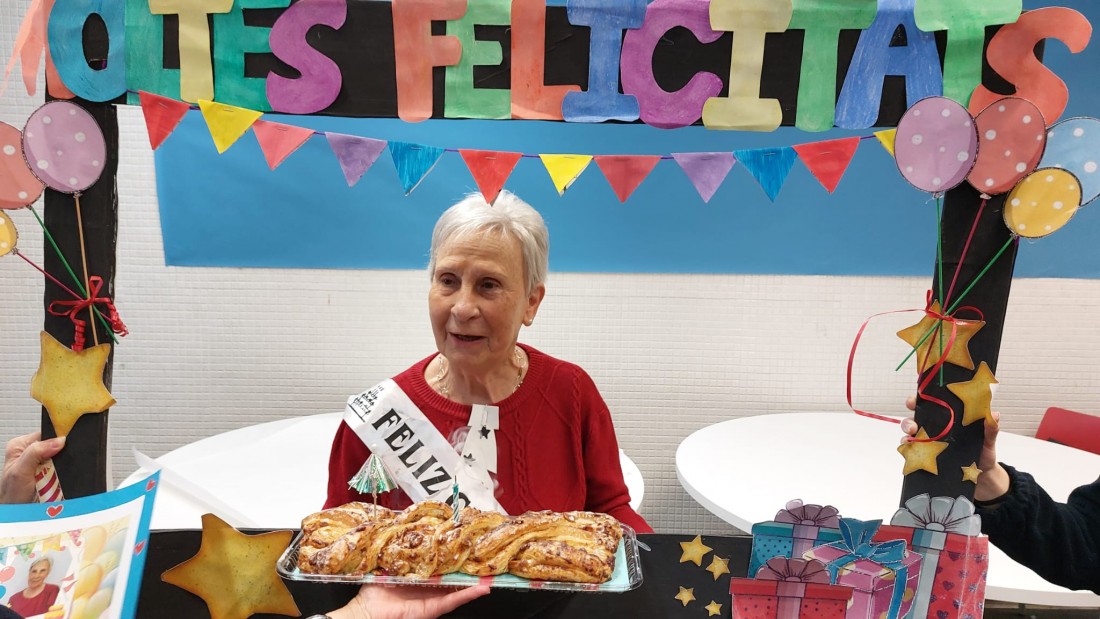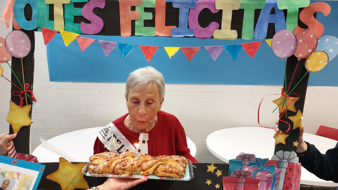Avui la sra. Rosa cumpleix 84 anys i ha portat berenar per celebrar-ho